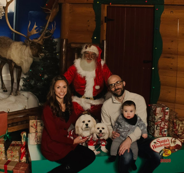 I'm so glad we did this. had to be a little different because of covid and they put plexiglass in front of santa but still way better than nothing. They caught me mid-blink of course haha And we saw my coworker and his family while we were there. And NO LINE THIS YEAR! WOOHOOO! HAHA
